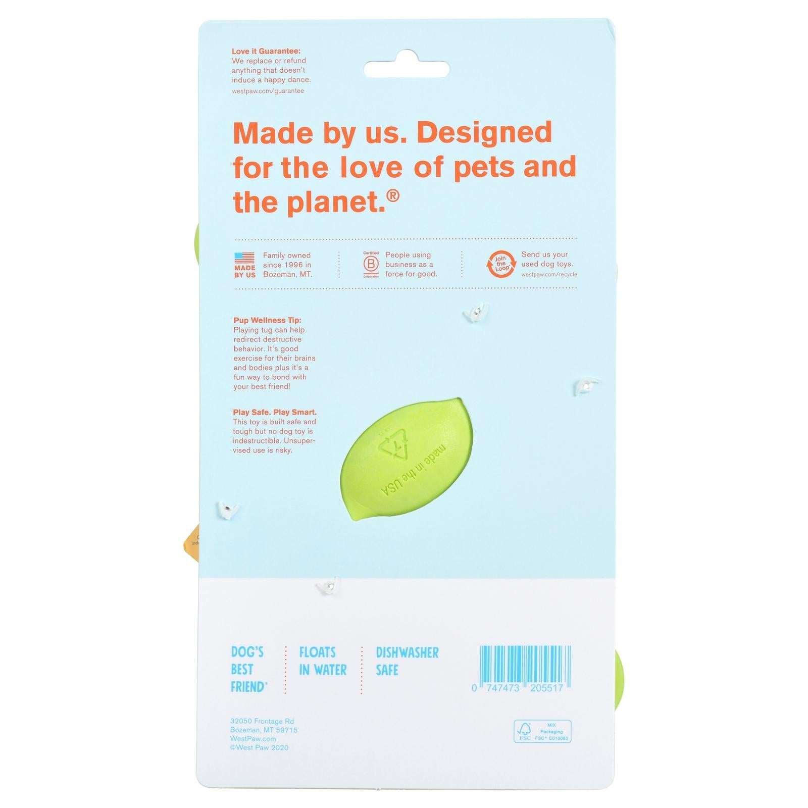 Se estira hasta el doble de su tamaño, este juguete en forma de “S” es el favorito de los fans de West Paw. Con un diseño inteligente para promover el juego de tira-tira entre perros y humanos o perro contra perro. También es ideal para aventar y buscar, además para jugar en el agua ya que flota.