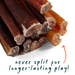 Estos Bully Sticks no solo son deliciosos, sino que además ayudan a limpiar los dientes y encías de tu perro de manera natural, al eliminar la placa y el sarro. Además, su origen responsable garantiza un producto premium, sin olores, duradero y seguro.