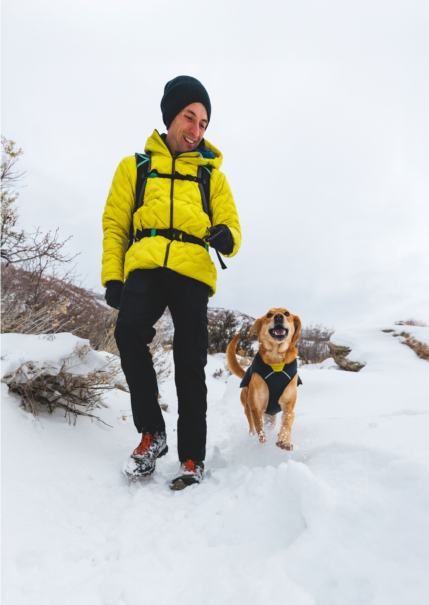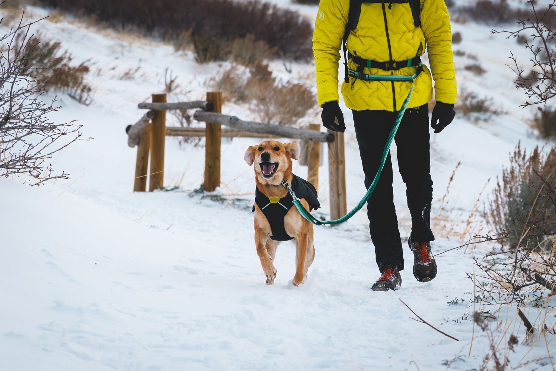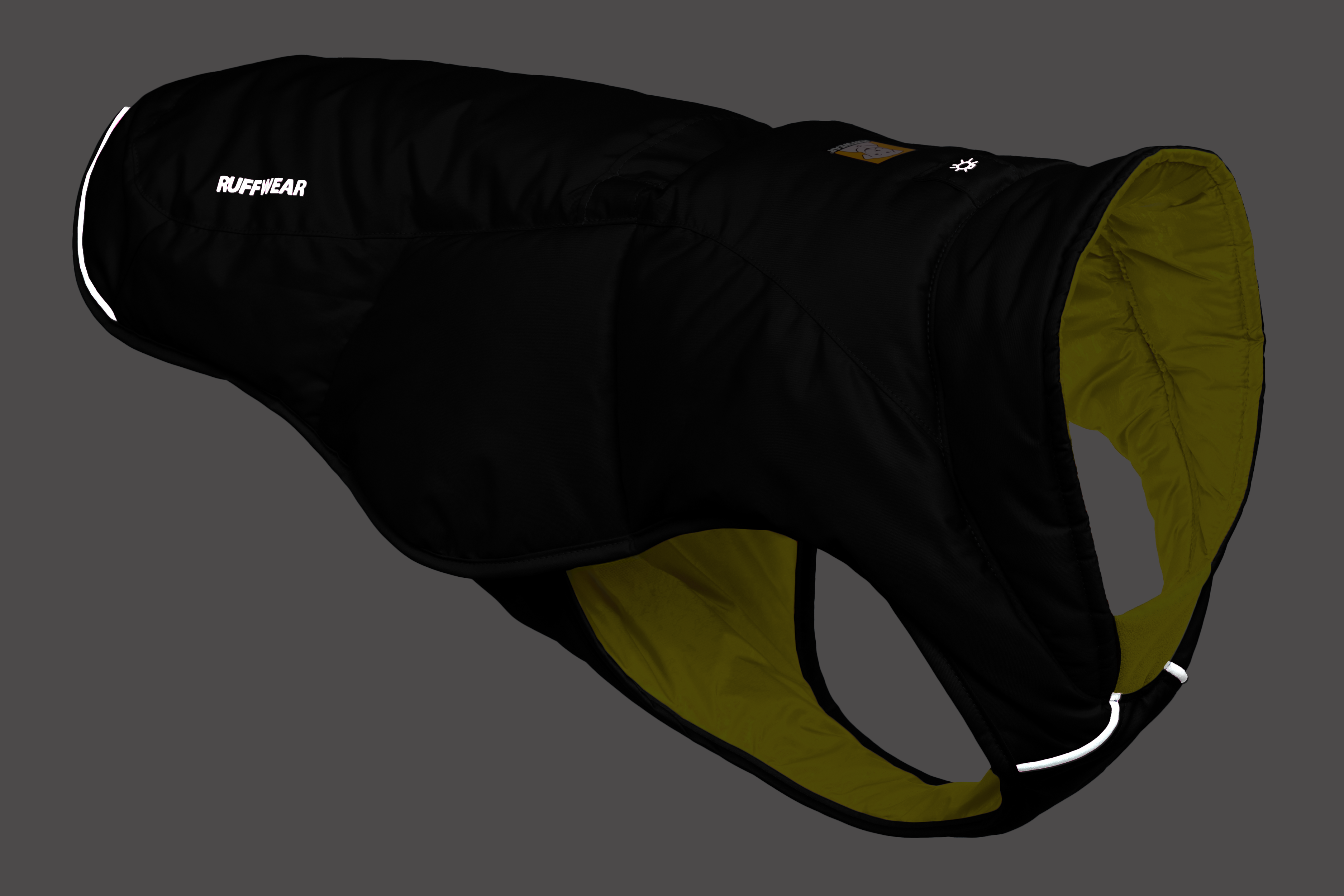 En esta versión, la chamarra viene en color Negro (Obsidian Black) con un forro interior en color amarillo brillante, ofreciendo un contraste moderno y llamativo que además mejora la visibilidad de tu perro en condiciones de poca luz.
