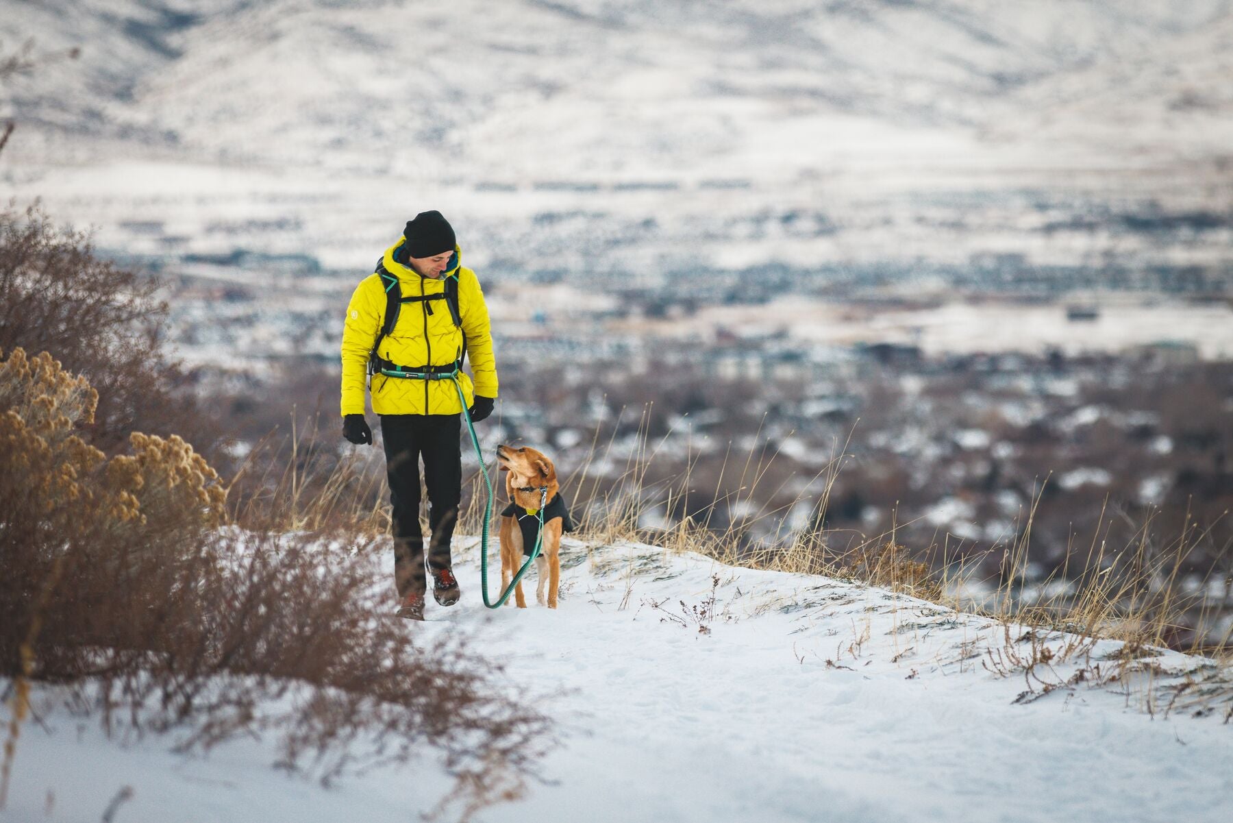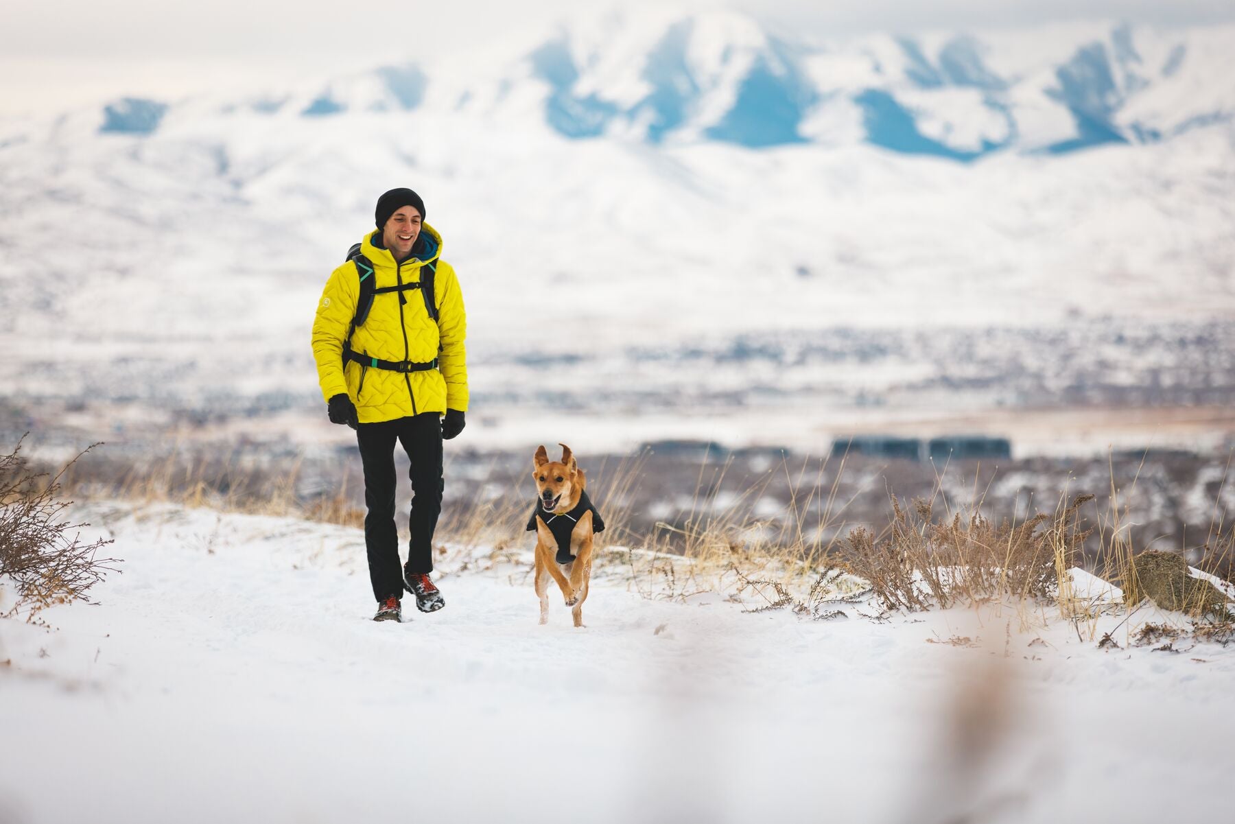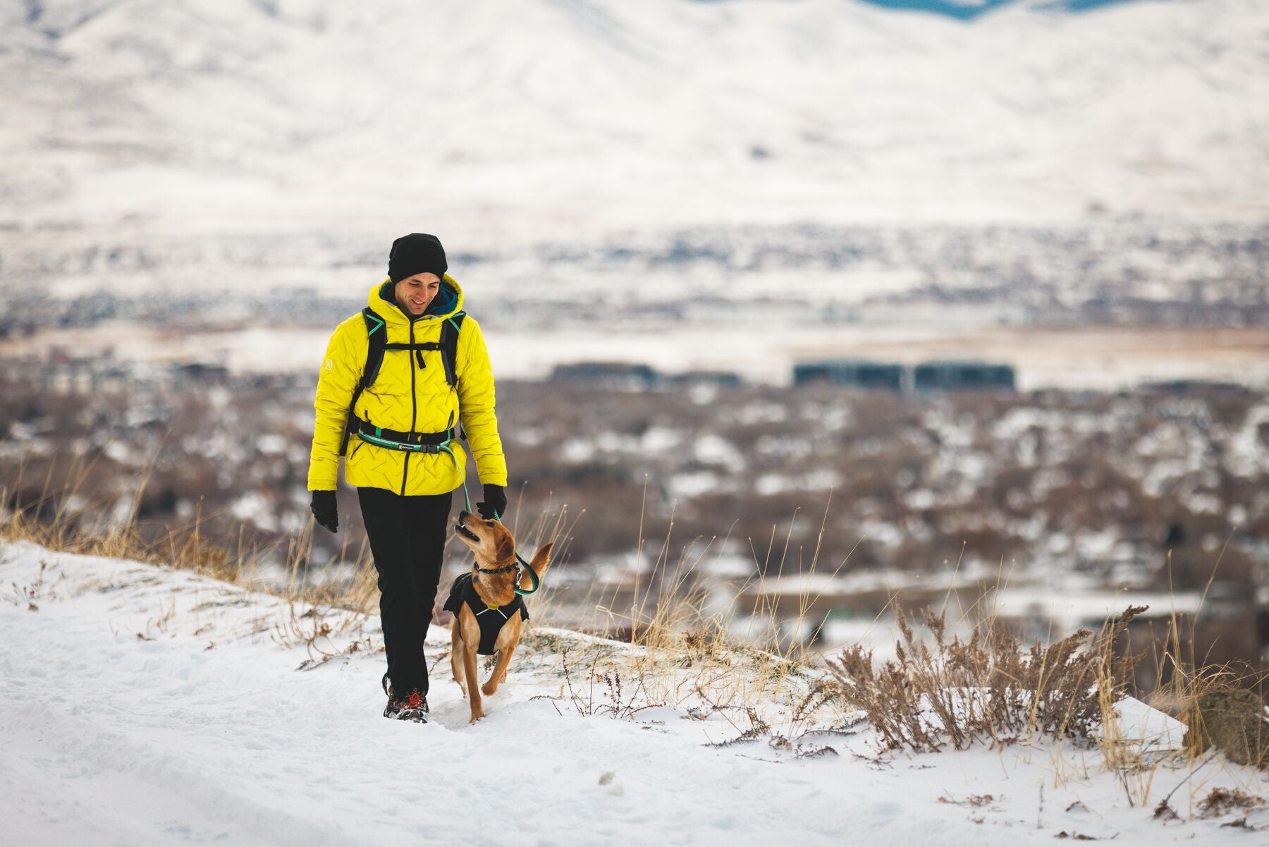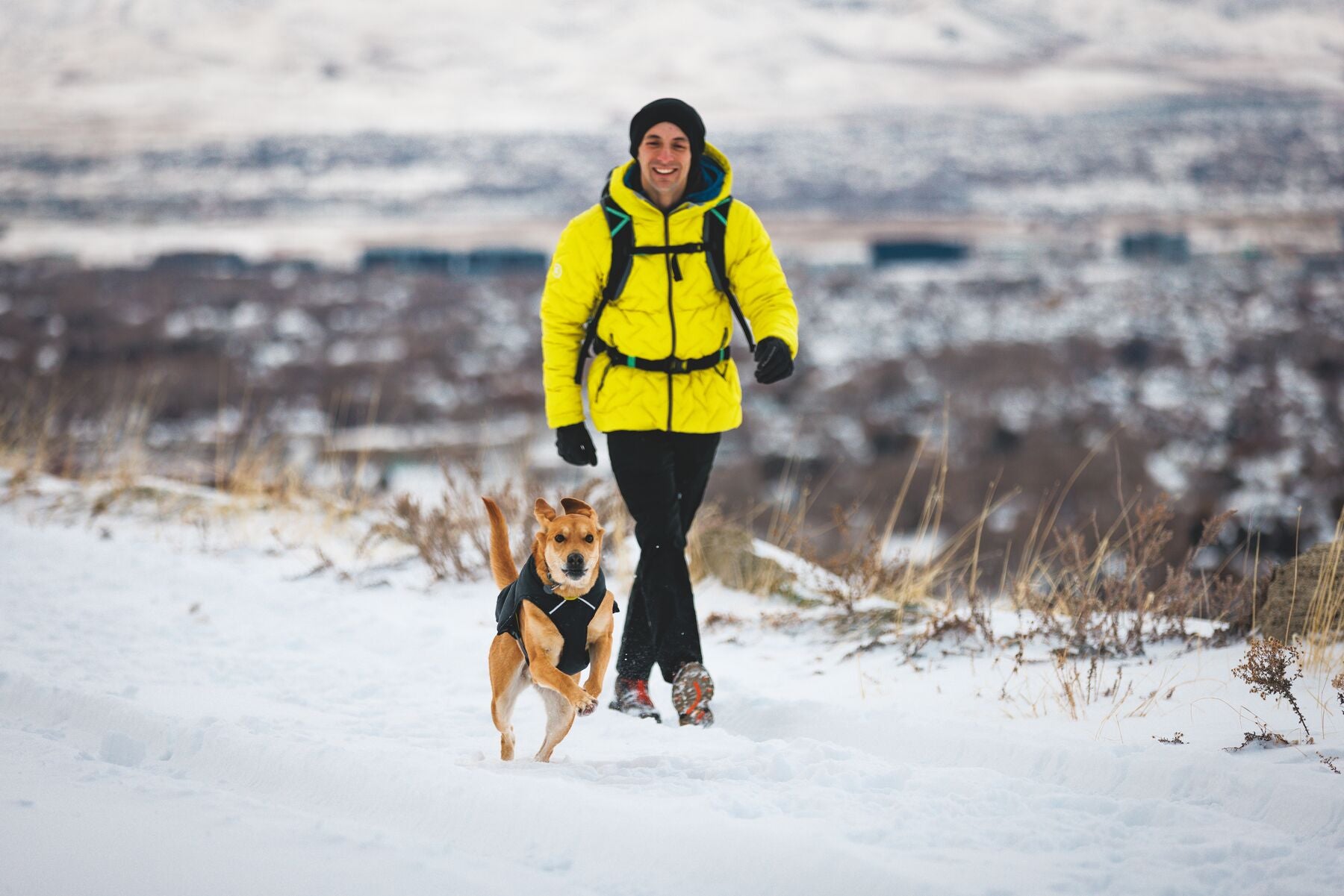 En esta versión, la chamarra viene en color Negro (Obsidian Black) con un forro interior en color amarillo brillante, ofreciendo un contraste moderno y llamativo que además mejora la visibilidad de tu perro en condiciones de poca luz.