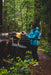 El portal en la espalda permite usar el impermeable sobre la mayoría de las pecheras.