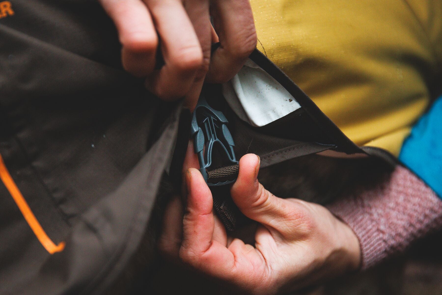 • Portal para correa que permite usar el impermeable sobre pecheras.