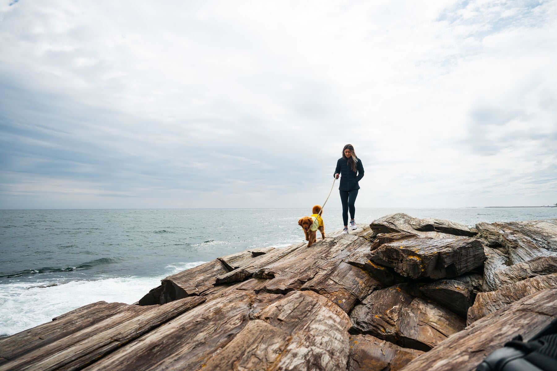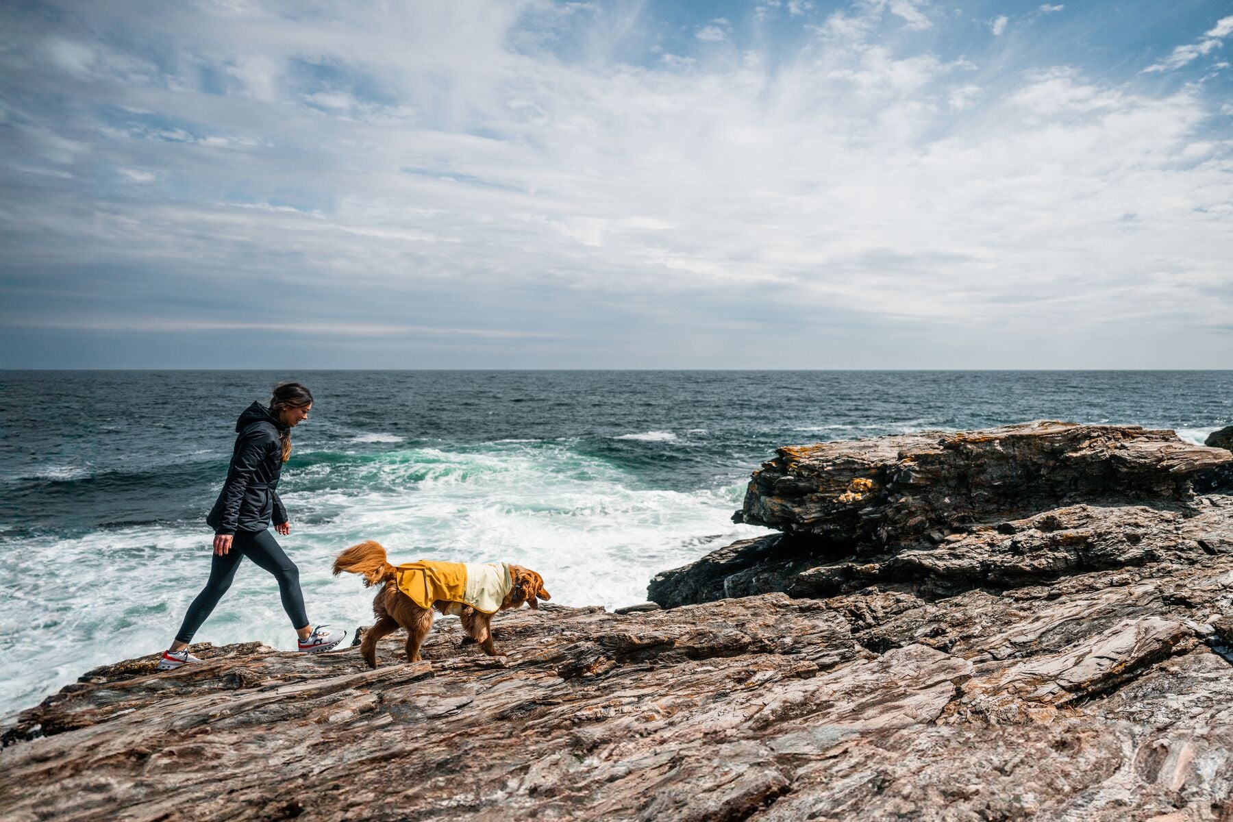 El collar de tormenta sobredimensionado se pliega hacia arriba para ofrecer mayor protección.