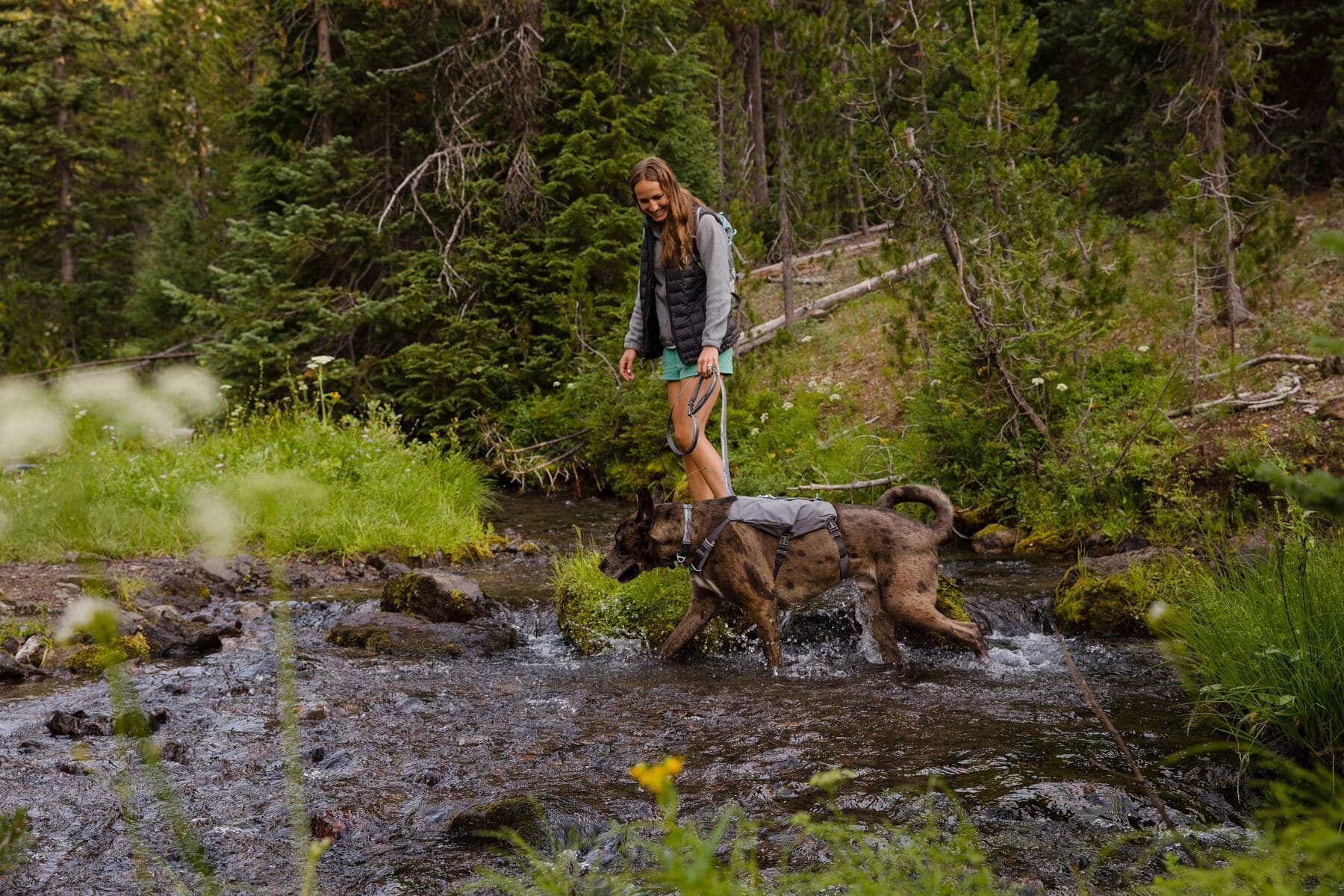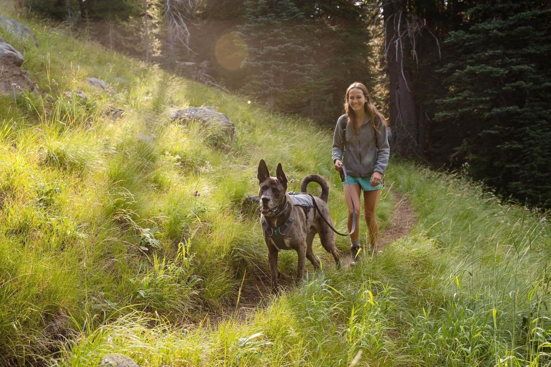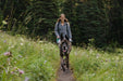 Estes es un color sobrio, gris, oficialmente conocido como Granite Gray con detalles en aqua, para perros y humanos que les gusta pasar más desapercibidos. La construcción es similar a la famosa pechera Front Range con su soporte pectoral, anillo frontal anti tirones pero agrega 2 características que nos encantan: